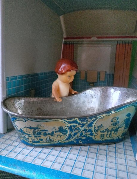 水浴びしたいね 2025年09月14日 10年以上前にイギリスで入手したブリキのバスタブ、在庫放出です。 ドールハウスサイズのとても古いもので 内側に黒ずみありますが ブルーのベースにクリーム色 ヴィクトリアンのプリントは きれいに残っています。 フローズンシャーロットを入れてあげたのかな こどもたちの優雅なドール遊びが彷彿されますね。 «前 次» ☀ EVERY TUESDAY ☀新入荷のお知らせです。