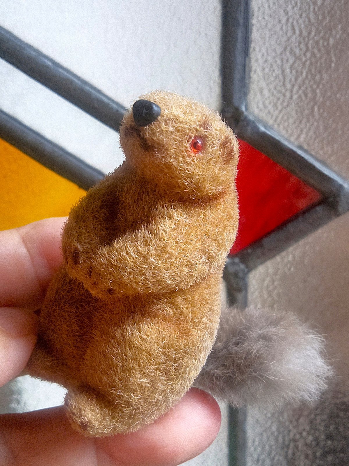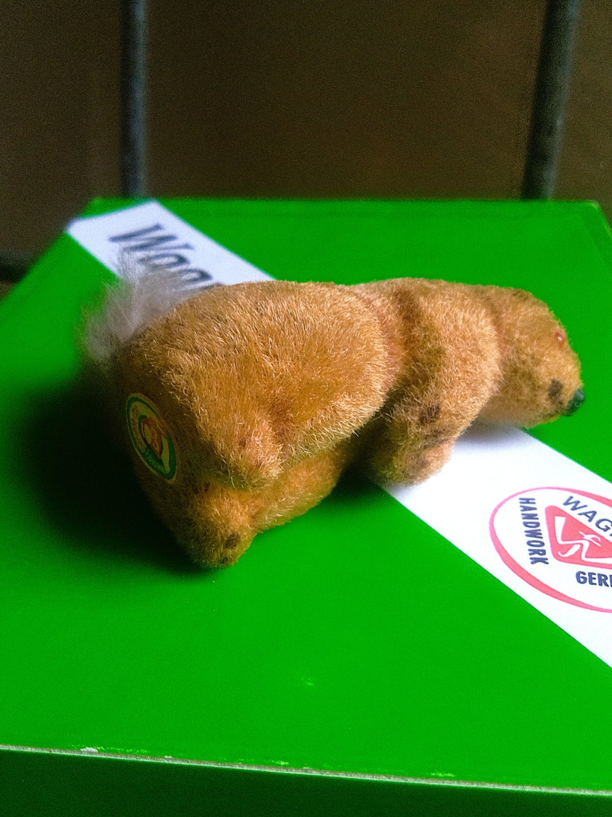 よごれ・凹みなどのダメージは見られません。きれいな良い様子です。同じワグナーのアニマルシリーズのビーバーとよく似た姿ですが、ビーバーのしっぽが平たいヘラの形をしたフロックドのつくりに対して こちらはふわふわファー ご自慢のしっぽになってます。