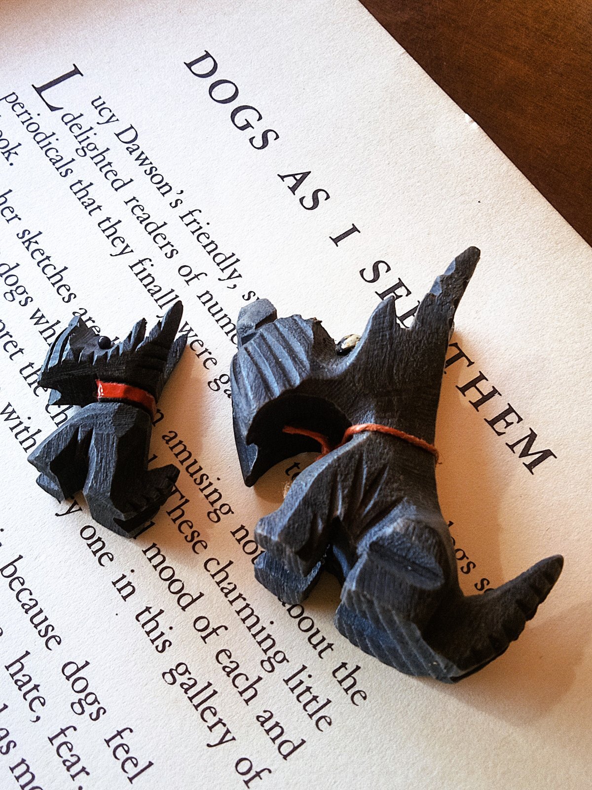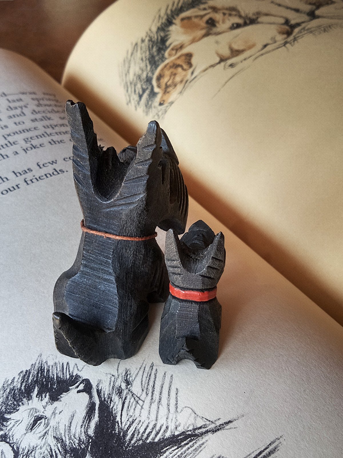 木彫りの2匹のテリア ヴィンテージのマスコット from ENGLAND