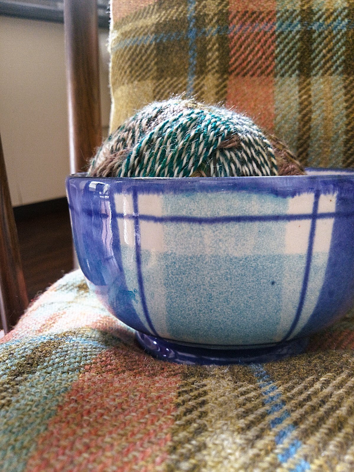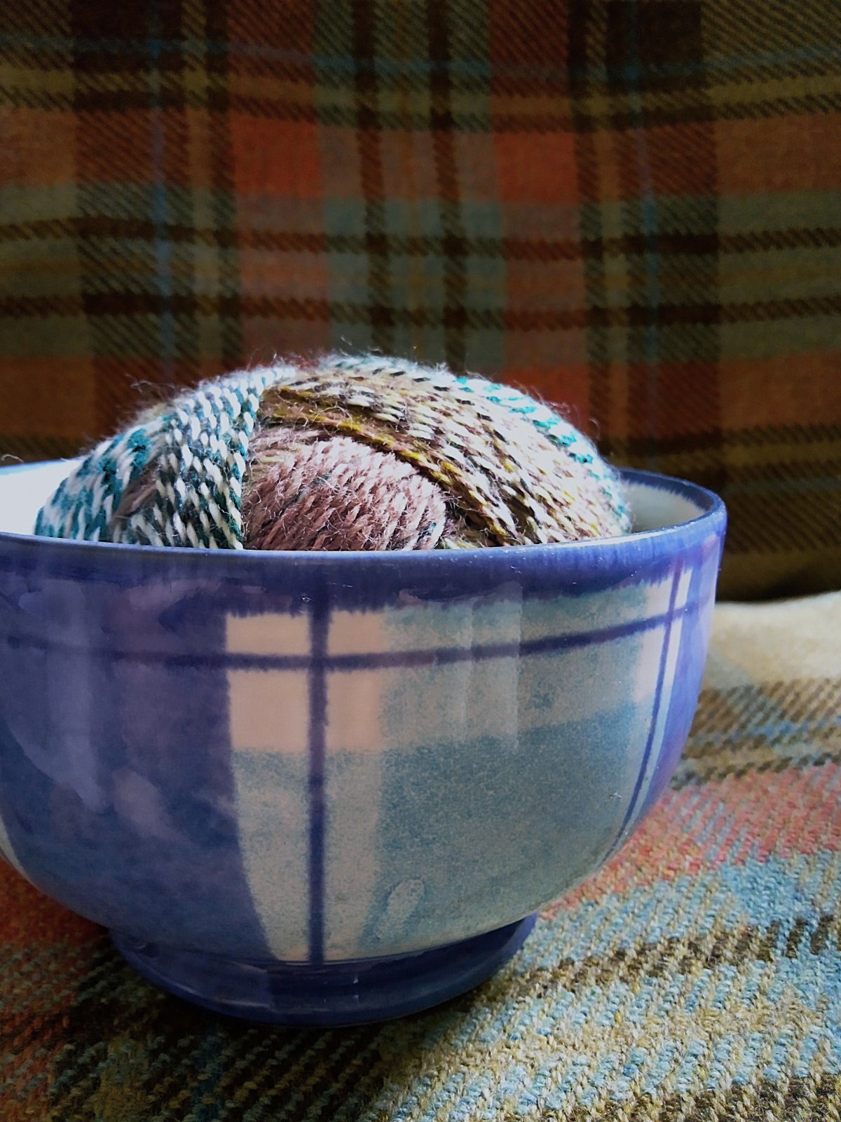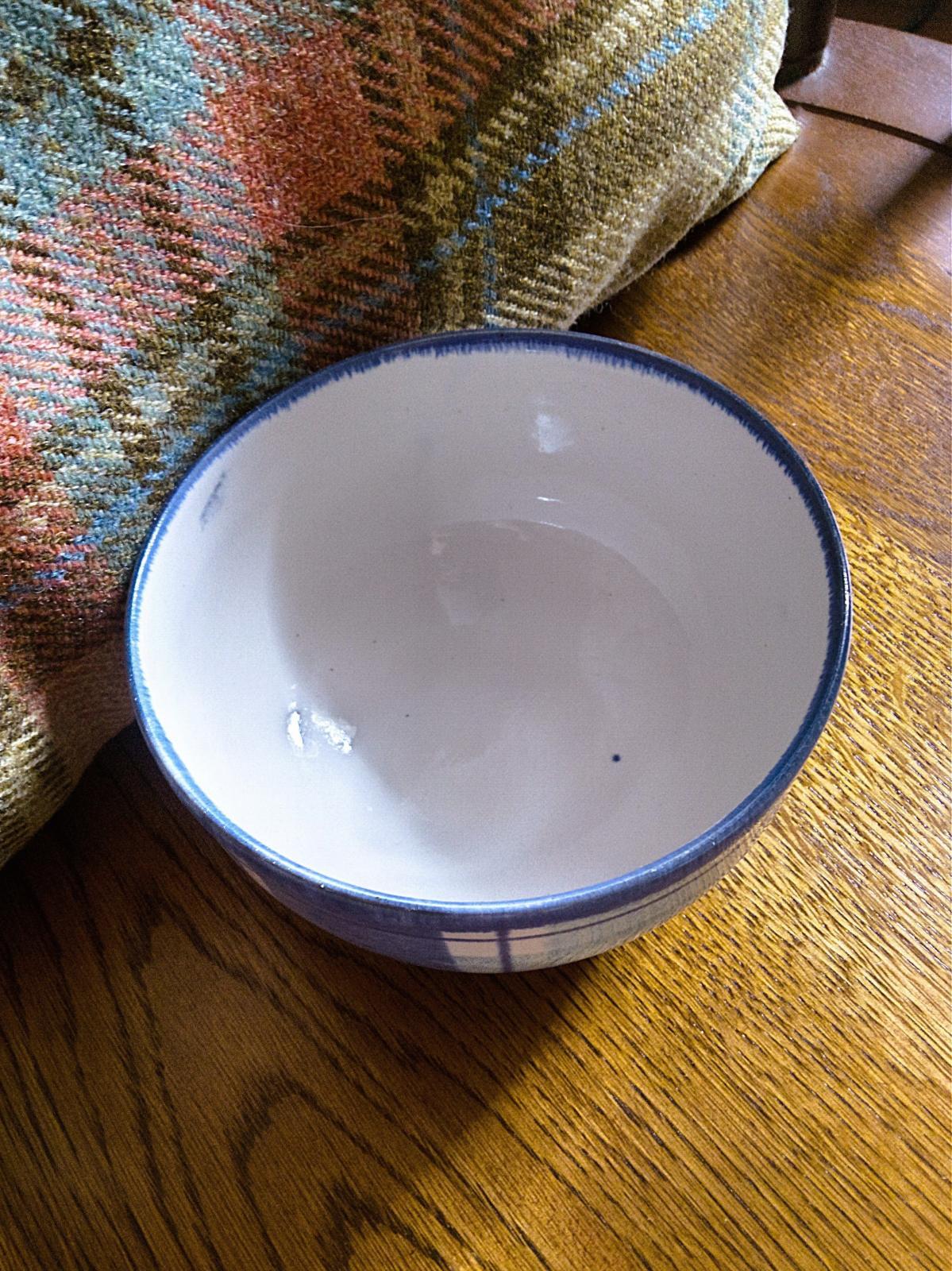 タータン模様が好きで イギリスでの買い付けのたびに少しづつ集めてきた工房作品のひとつ 在庫放出です。スコットランドに工房を構えるANTAというブランドで、お得意はウールの毛織物ですが、オリジナルのタータン模様の陶器(プレート・カップ・ポット・花瓶など)も展開しています。こちらは ライトブルー×ホワイトのタータンチェック のボウルです。素朴で味わいあるハンドペイントが映えています。