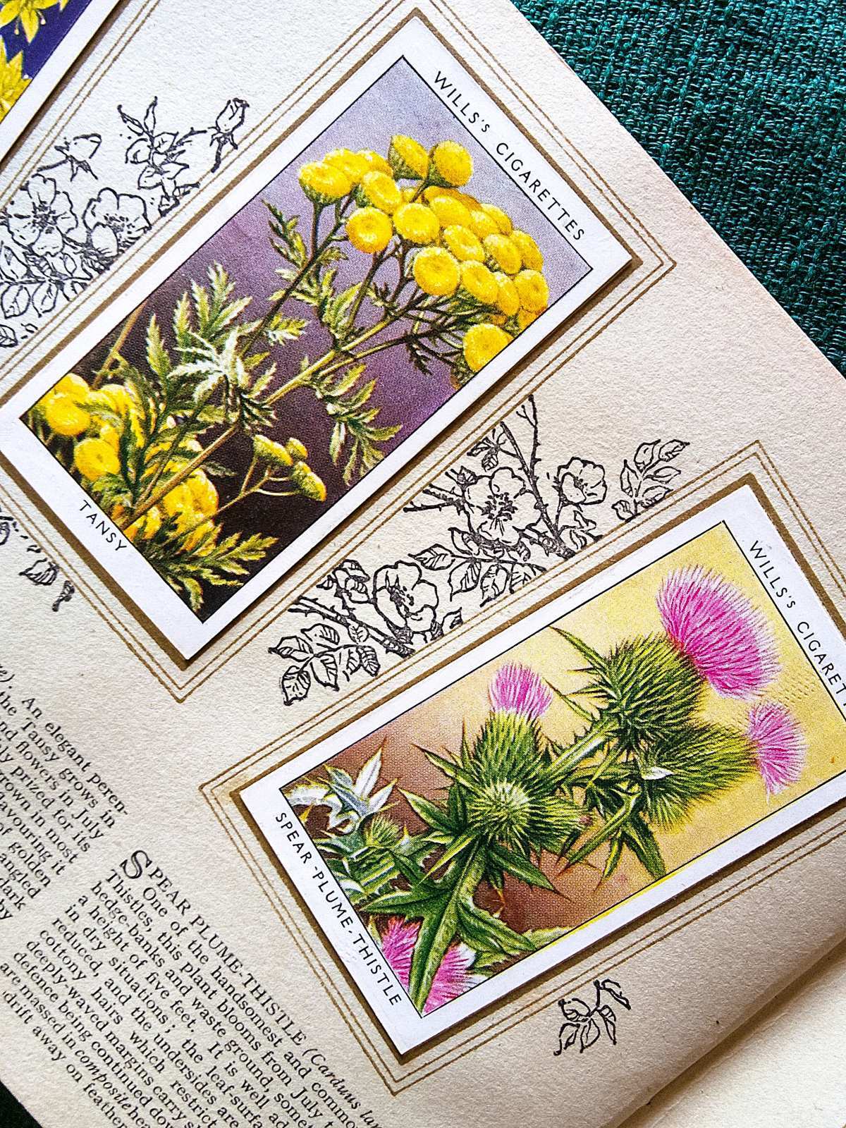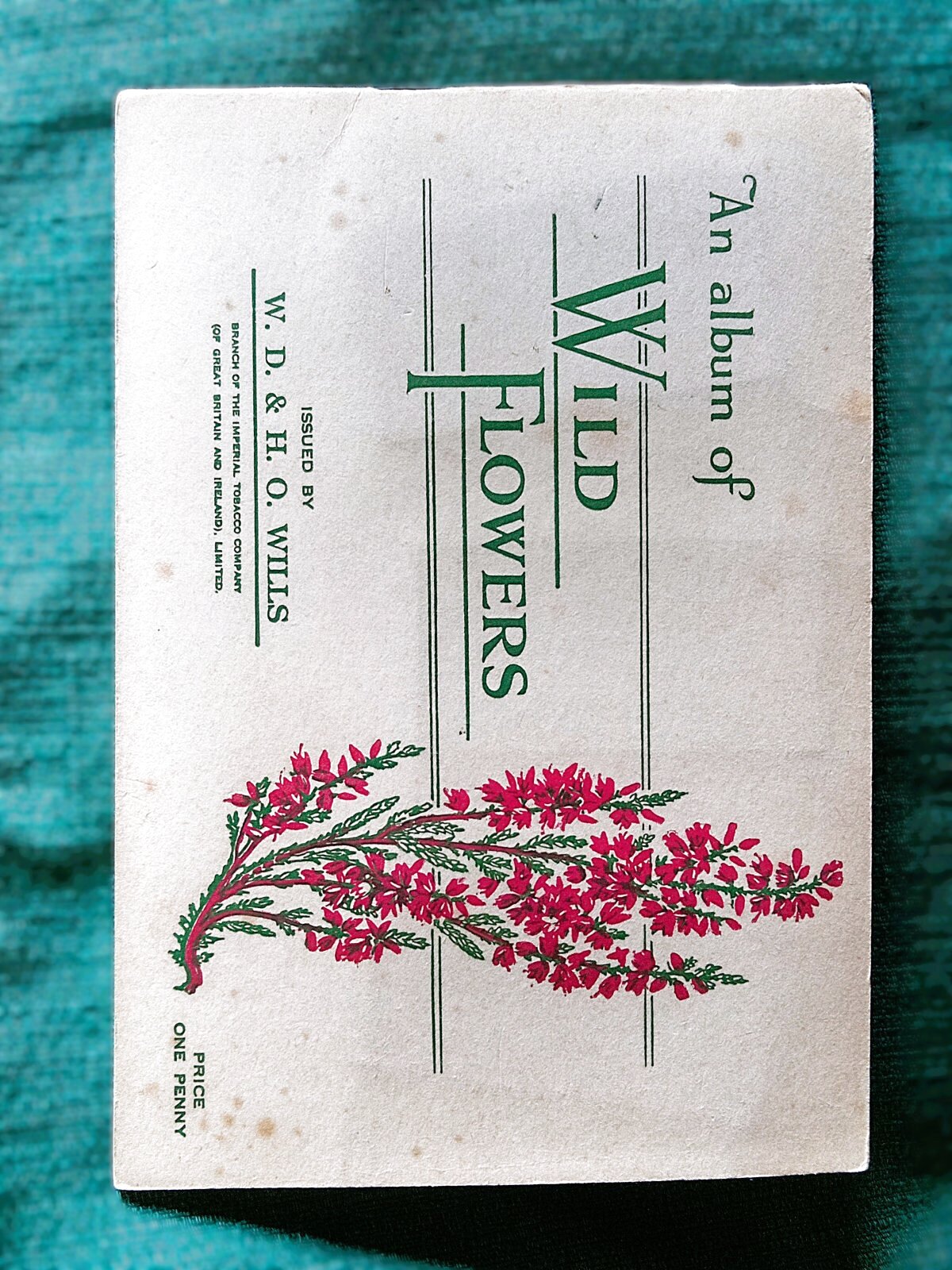 当時タバコの箱におまけとして入れられていたもので、動植物や人物など様々の図柄でシリーズ展開されていました。こちらはワイルドフラワーのデザインのもの、シリーズ全50枚揃ってオリジナルの専用台紙に貼られたコンプリートアルバムです。
