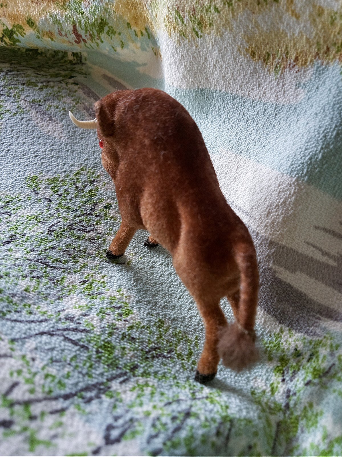 プラスチックの角 尻尾の先にリアルファー 1950年代 旧西ドイツ メーカーラベル