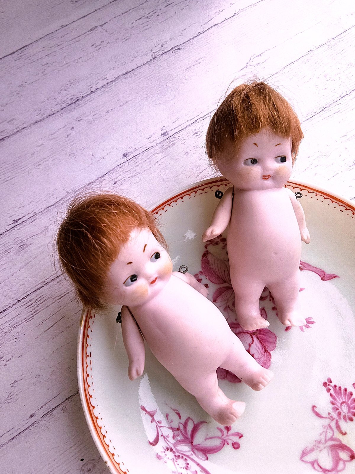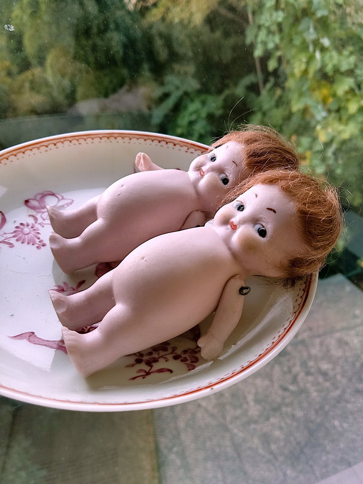 ひとり背中に製陶時にできた粒状の凸がある以外には、どちらもビスクの肌はざらつきなく滑らかで 外観を損なうようないたみはないようです。大事にされてきた良いアンティークコンディションですよ。