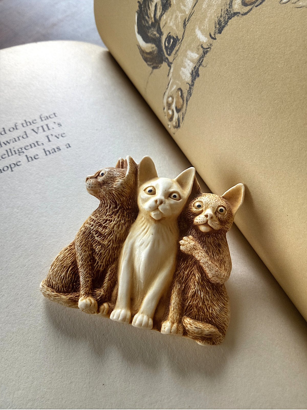 3びきのねこ ブローチ きれいなアイボリーの風合い
