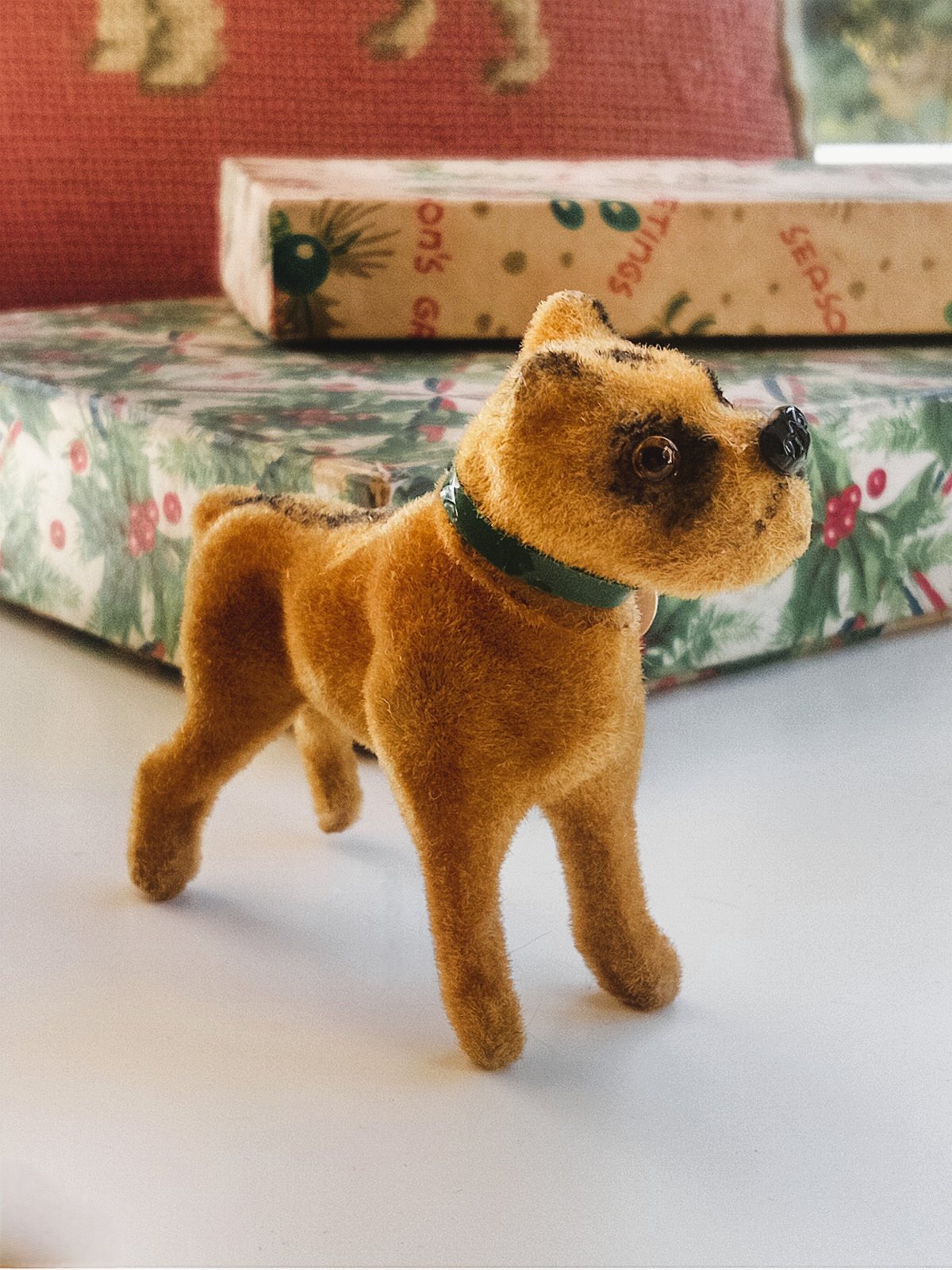 フロックドボディ 高さ約6cm グラスアイ 鼻はプラスチック エアブラシ吹き付け模様 オリジナルの首輪 1950年代 Wagner社