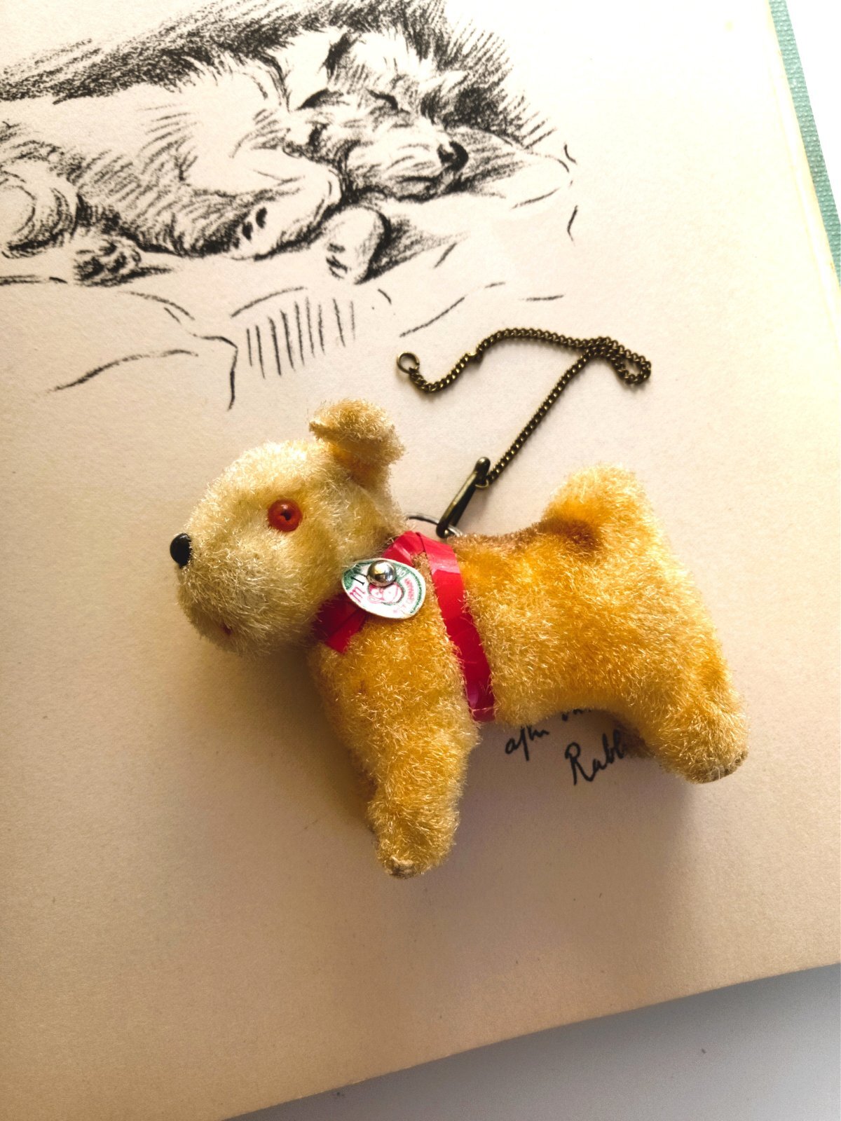 体長約7,5cm グラスアイ 鼻は黒ビーズ 赤いフエルトの舌