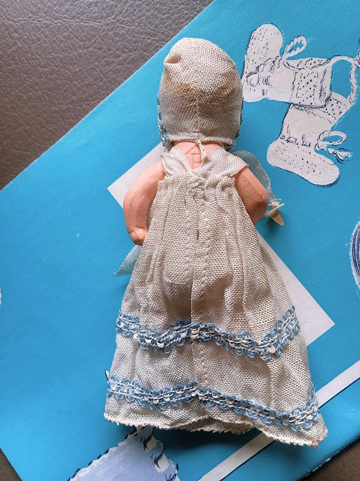 目・口・頬・髪はペイント ブルーアイ おしゃぶりはセルロイド製