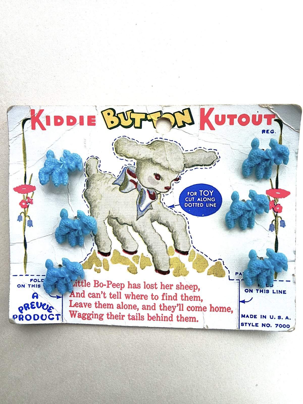青い羊のボタン 6個 オリジナルカード ヴィンテージ