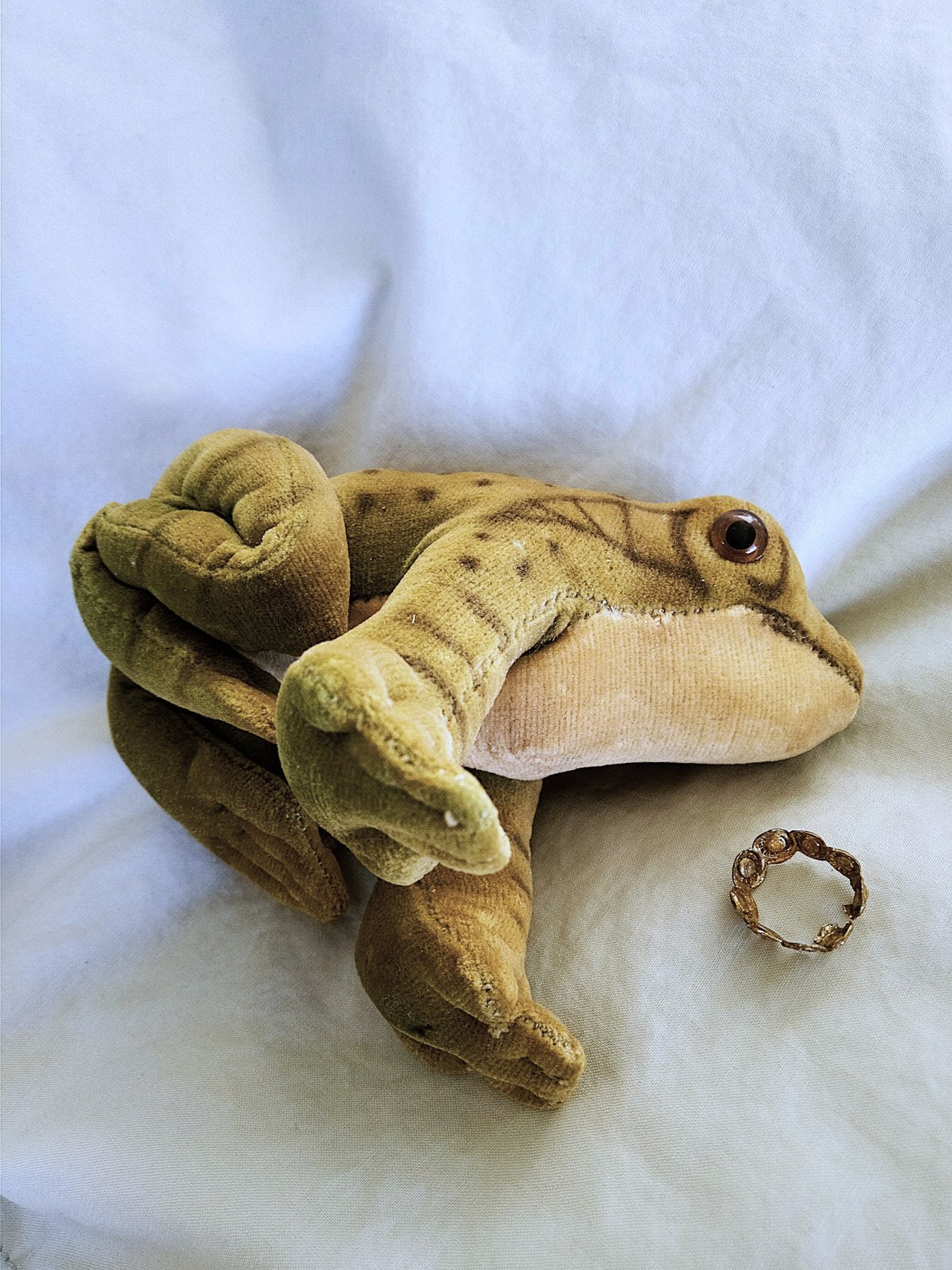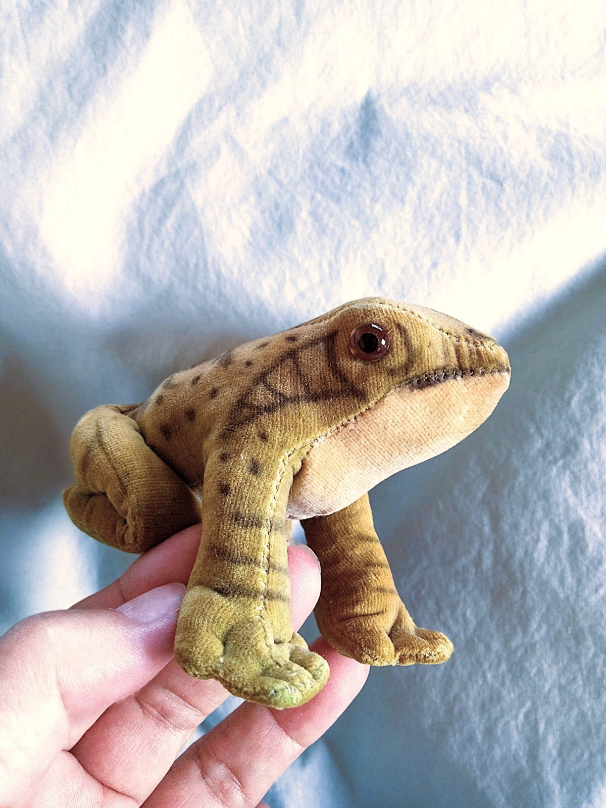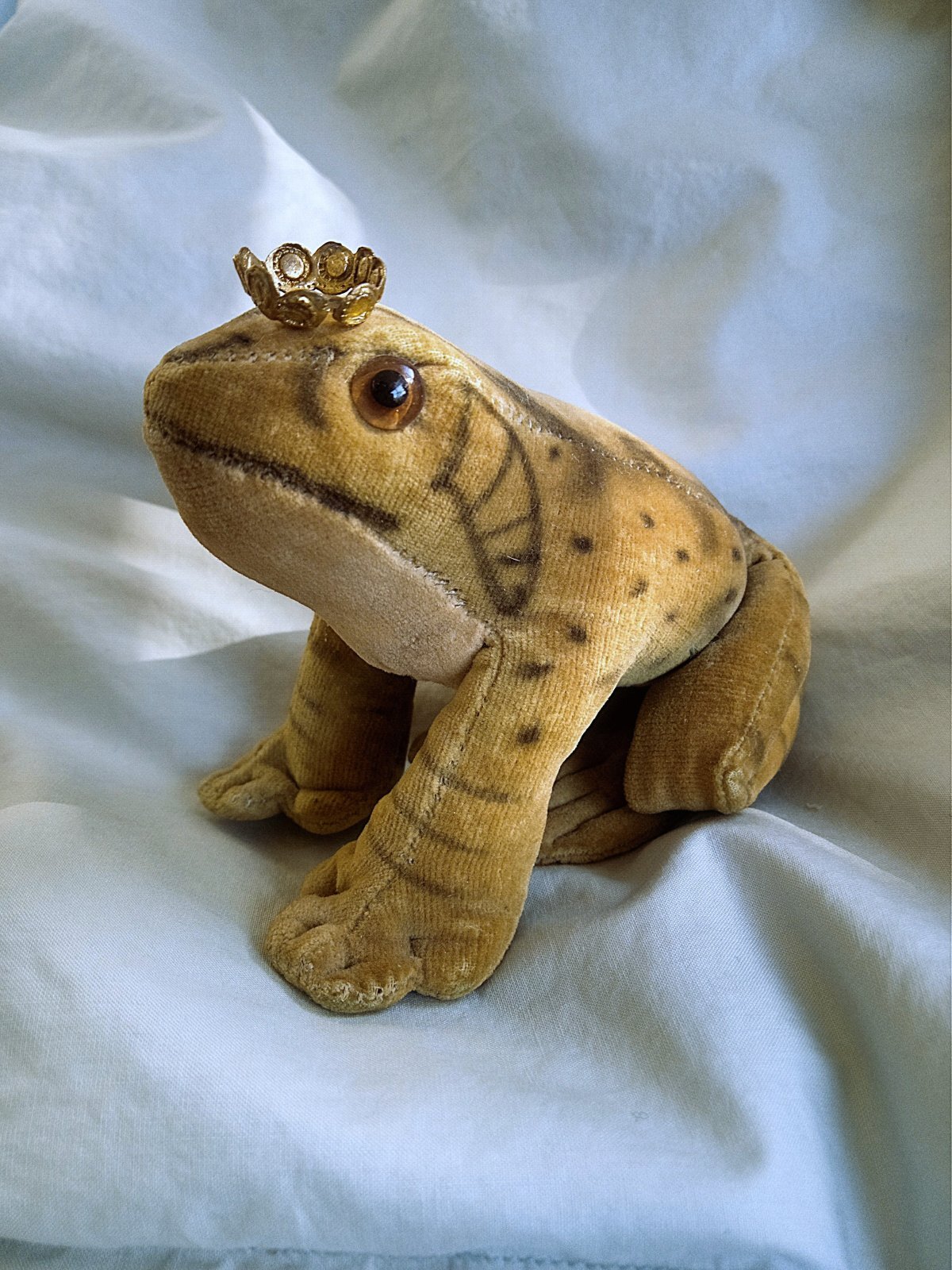 ベルベットのかえる シュタイフ ヴィンテージ ベルベットのかえる シュタイフ ヴィンテージ 返品特約に関する重要事項 SOLD OUT 古い時代のカエルです。 模様の入ったベルベットの感触は ノスタルジックな雰囲気ありますね。 おとぎ話に登場する王子様? なんて 頭の先まで高さ約7,5cm ガラス目 1950〜60年代 ドイツ シュタイフ社 模様はきれいに残っていますが、体は色ヤケしてカーキ色のような感じです。裏側にもとの緑色が見てとれます。気になるような切れ・穴・へたりなどはありません。概ね良いコンディションです。 画像内のちび王冠は、SNAPの即席ハンドメイドです。おまけで付属させます。 他の写真 Every Tuesday Every Fun! 毎週火曜日の更新です。