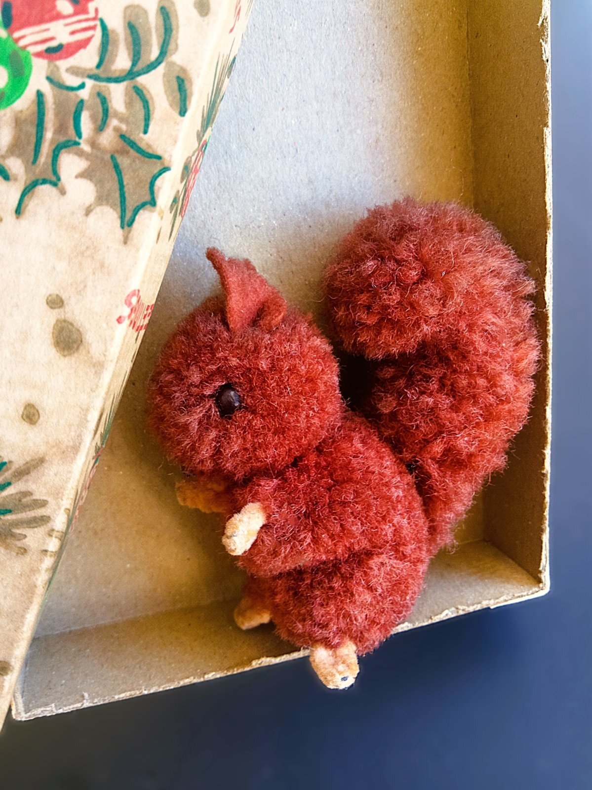 印象の悪いウールの乱れは見られません。ポンポンの小鳥やウサギに比べると、こんなポンポンりすは 製造数が少なかったのでは とても珍しくラッキーな出会いと思います。