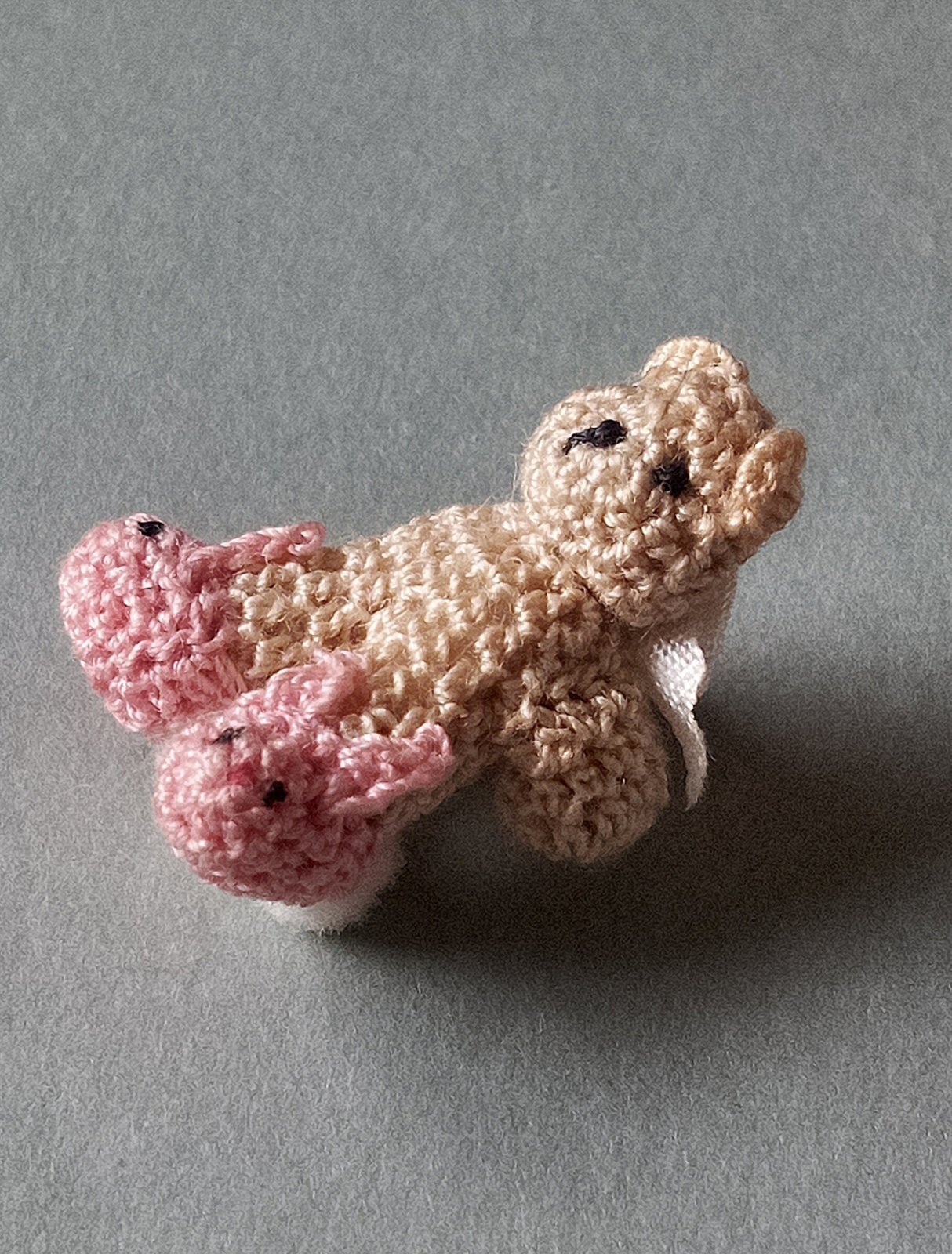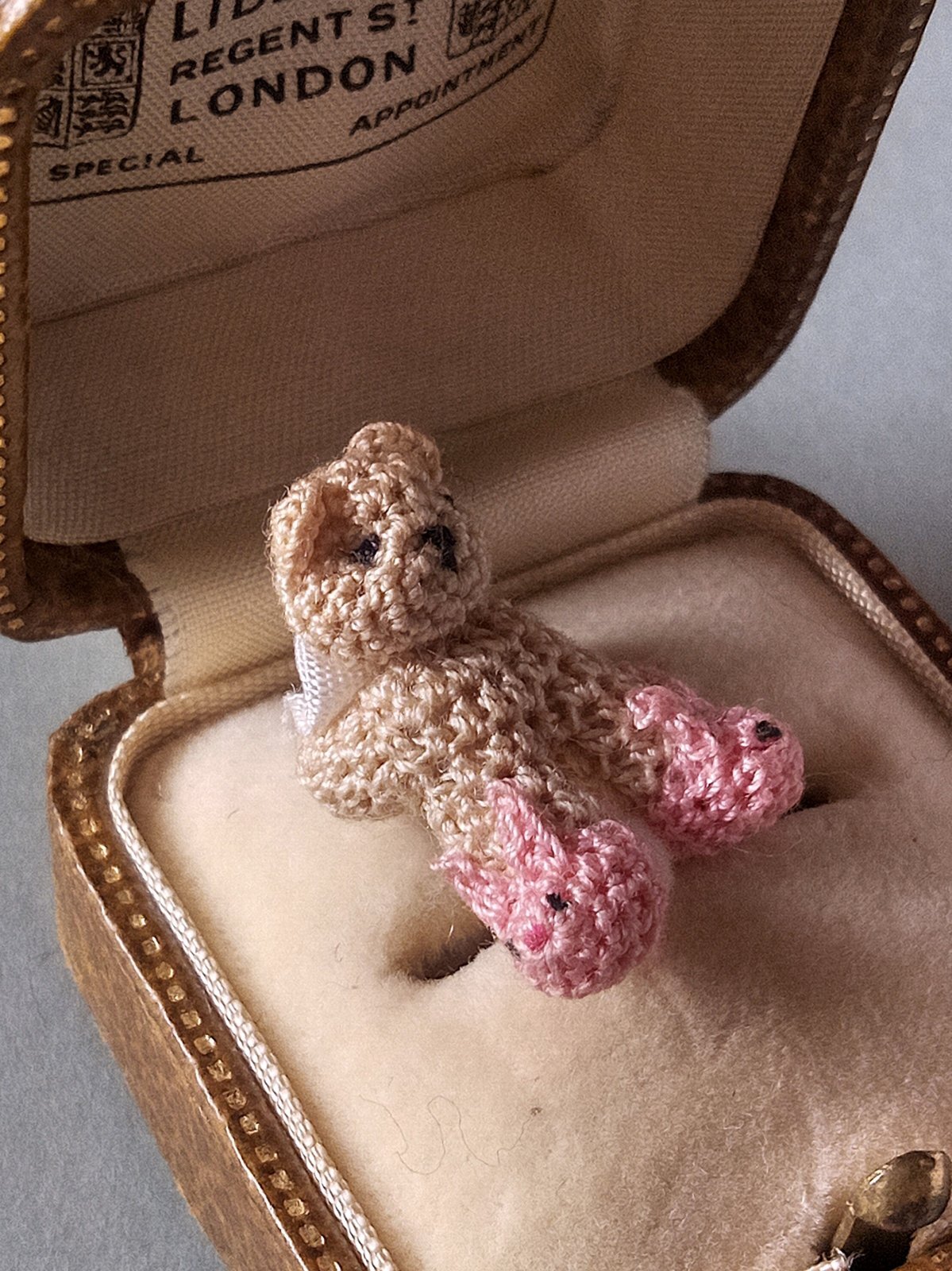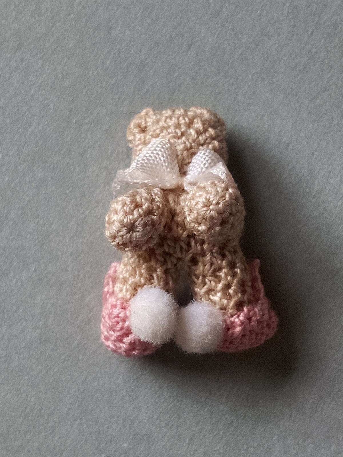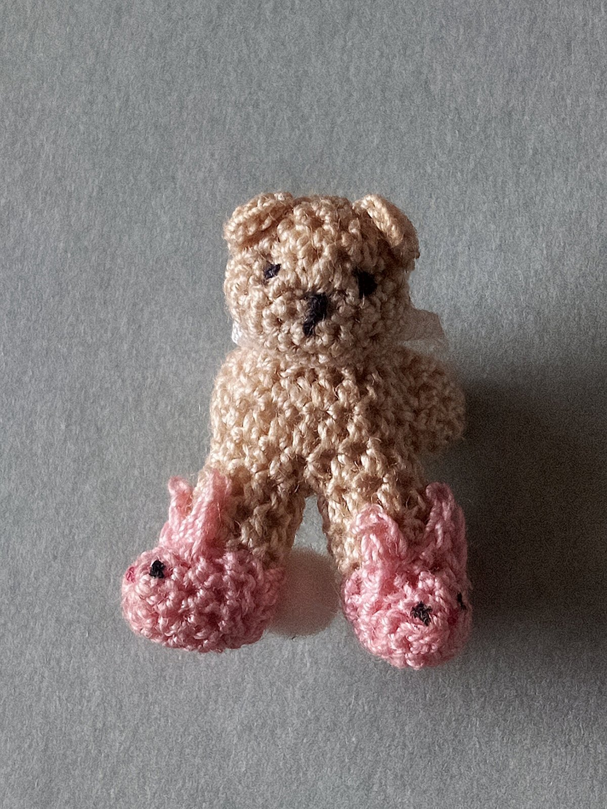 ウサギ靴を履いたベビー熊 ミニチュア ハンドニット 編みぐるみ
