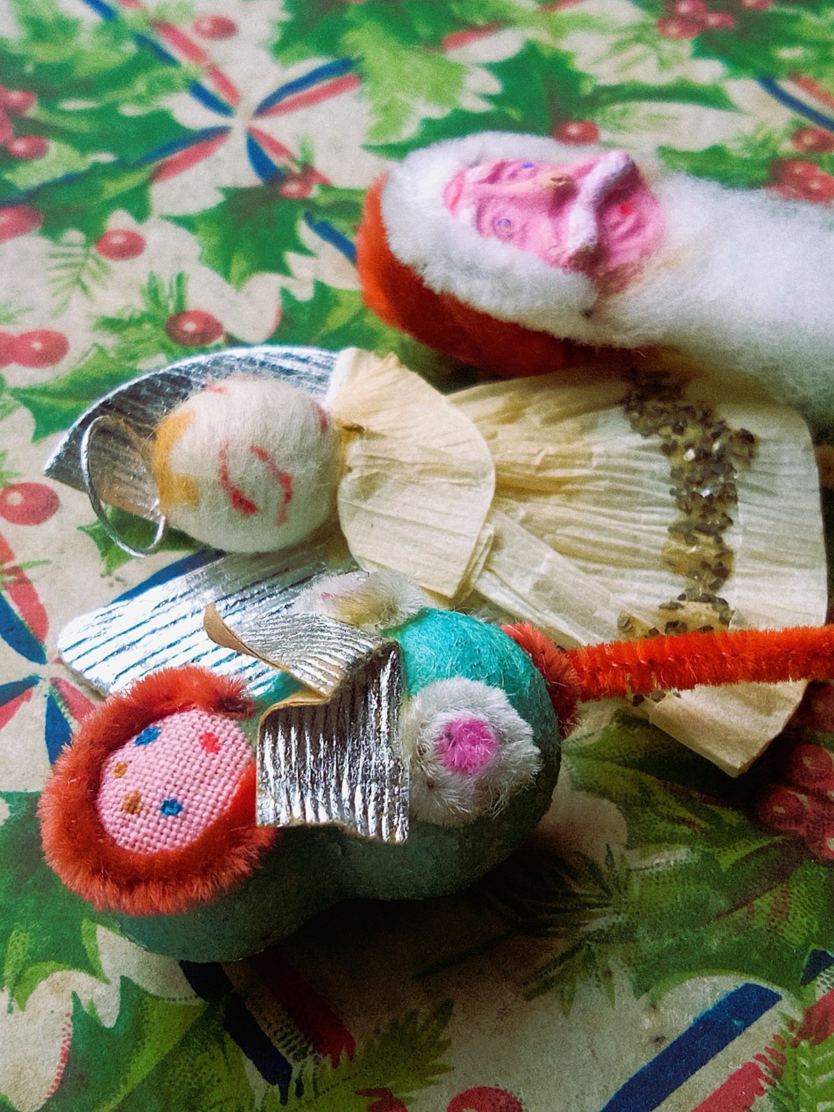 プレゼントに添えたり、ツリーに飾ったりされたものですね。 あたたかみある素朴なつくりがレトロで愉しいです。